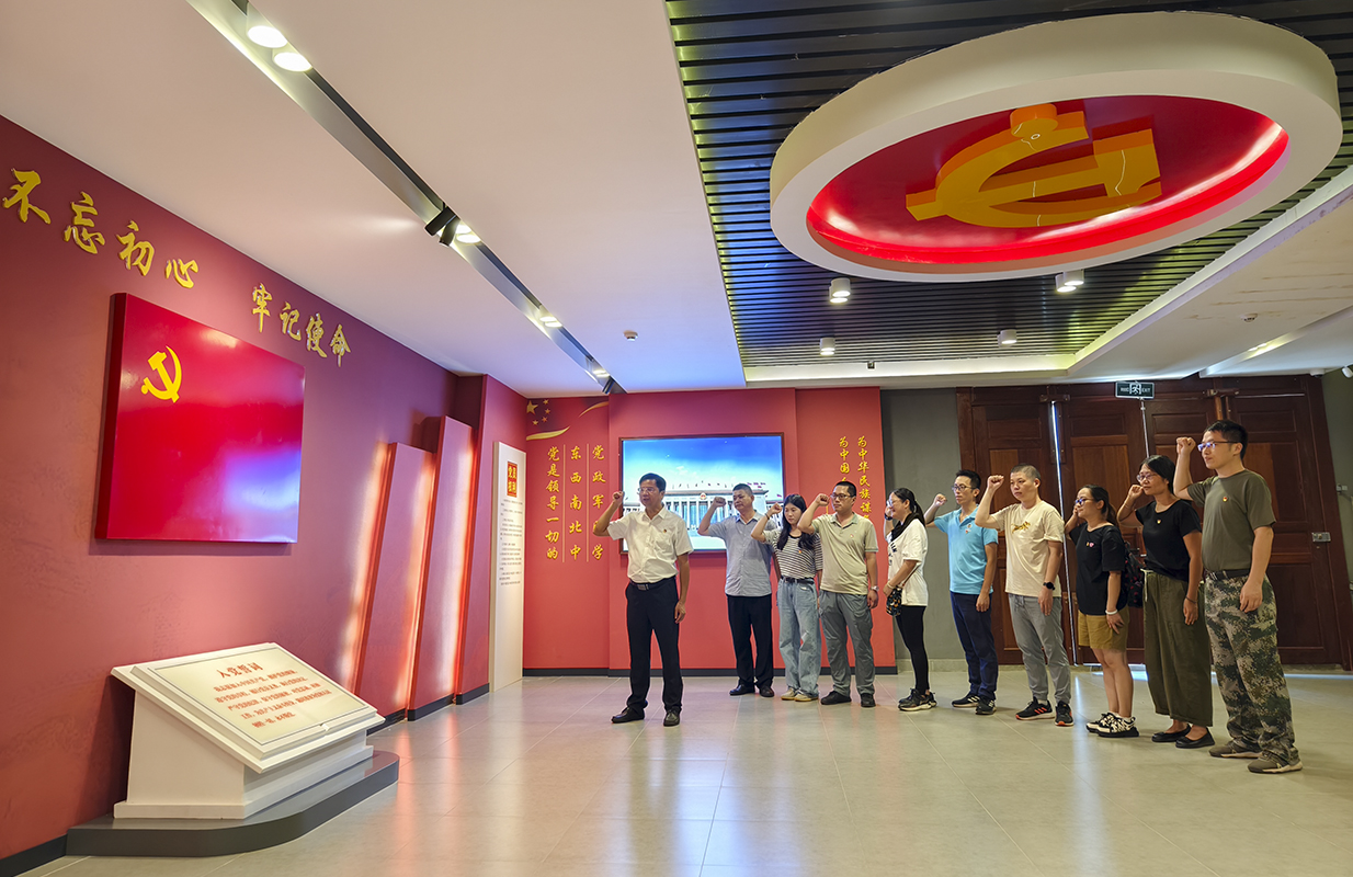 最后,在陈瑸廉政史迹展览馆影视厅内,参加活动的全体党员在学院党委书记欧卫军带领下重温入党誓词,面对党旗庄严宣誓。