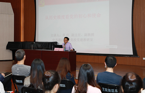 在舞蹈楼206室,肖任副教授以《从历史维度看党的初心和使命》为题,从在救亡图存的摸索中孕育初心使命、在夺取革命斗争的胜利中铭记初心使命、在社会主义建设与改革的新征程中坚守初心使命和在砥砺奋进的新时代展望初心使命这四个历史维度,通过一个个真实鲜活的案例,深刻剖析了党的初心和使命。随后,肖任副教授与师生进行互动交流,耐心解答师生的问题和困惑,为学院师生践行初心使命提供了宝贵的建议与意见。