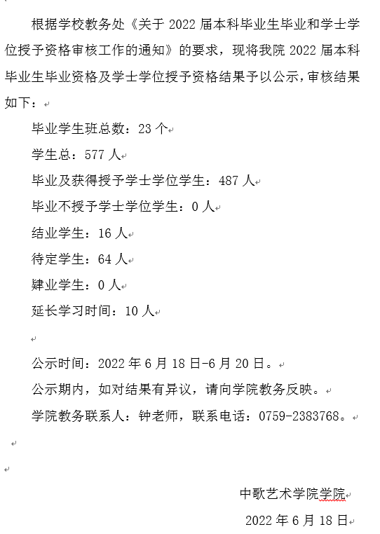 h小说网 2022届本科毕业生毕业资格及学士学位授予资格审核结果的公示