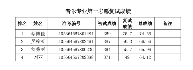 现将2024年硕士研究生招生音乐专业考试成绩公示如下。公示时间10个工作日,2024年4月2日-2024年4月16日。公示期间如有异议,请以书面材料向学院反馈。