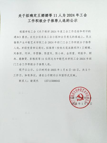 关于拟确定王娜娜等 11 人为 2024 年工会工作积极分子推荐人选的公示