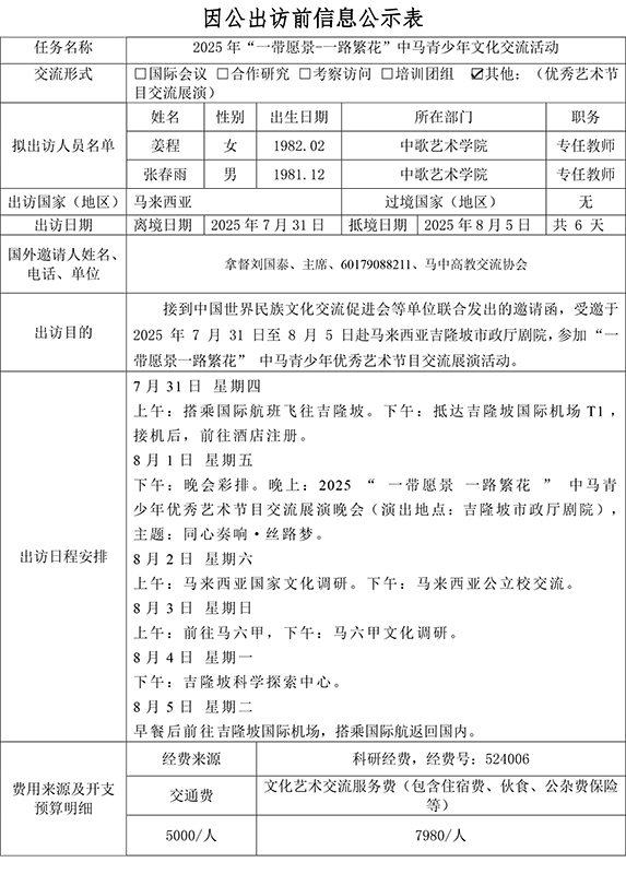 根据《关于进一步规范省部级以下国家工作人员因公临时出国的意见》的要求,现将h小说网 因公出访信息予以公示。公示时间为2025年7月2日至7月8日,如有意见、请在公示期内,向相关单位反映、(国际交流与合作部电话:0759-2396206:纪检监室电话:0759-2383501)