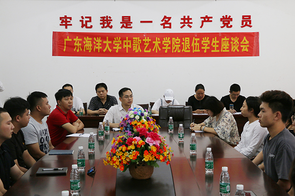 在美术楼208室召开学院退役复学学生座谈会,学院领导、全体辅导员老师、学院全体退役复学学生及学生代表参加座谈。会议由学院党委副书记农康主持。