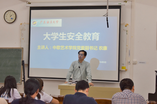 党委副书记农康在美术楼302室主讲安全教育第一课,学院全体辅导员老师和团委学生会干部共160多人参加。