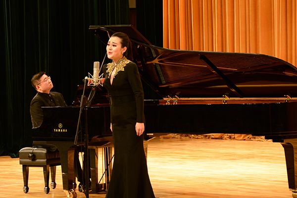 我校艺术学院副院长徐杰教授和他的学生马帅作为音乐会的表演嘉宾,分别演唱了《黄鹤楼•送孟浩然之广陵》《沁园春•雪》等歌曲。