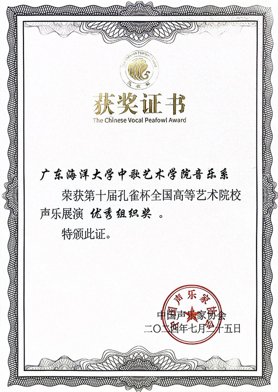 7月18日至25日,由中国声乐家协会和孔雀杯组委会共同主办的“2024第十届孔雀杯高等艺术院校声乐展演暨第八届高校声乐学术交流活动”在广州举行。我校h小说网