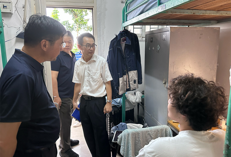 党委书记欧卫军、副书记翟周带领辅导员、学生干部开展学生宿舍安全教育检查。